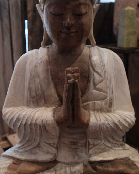 Handkarvad Buddha - Vittvättad, 30cm