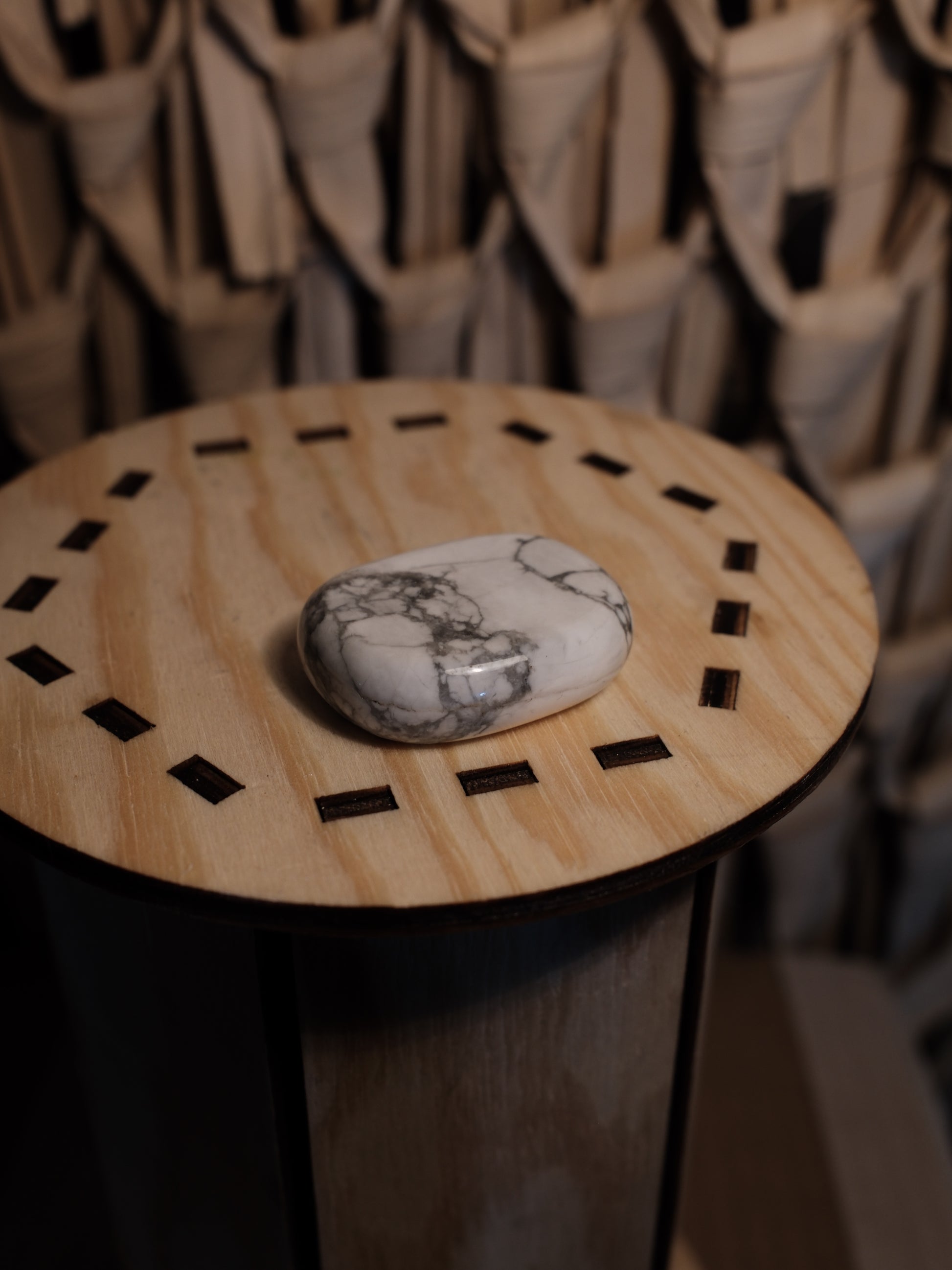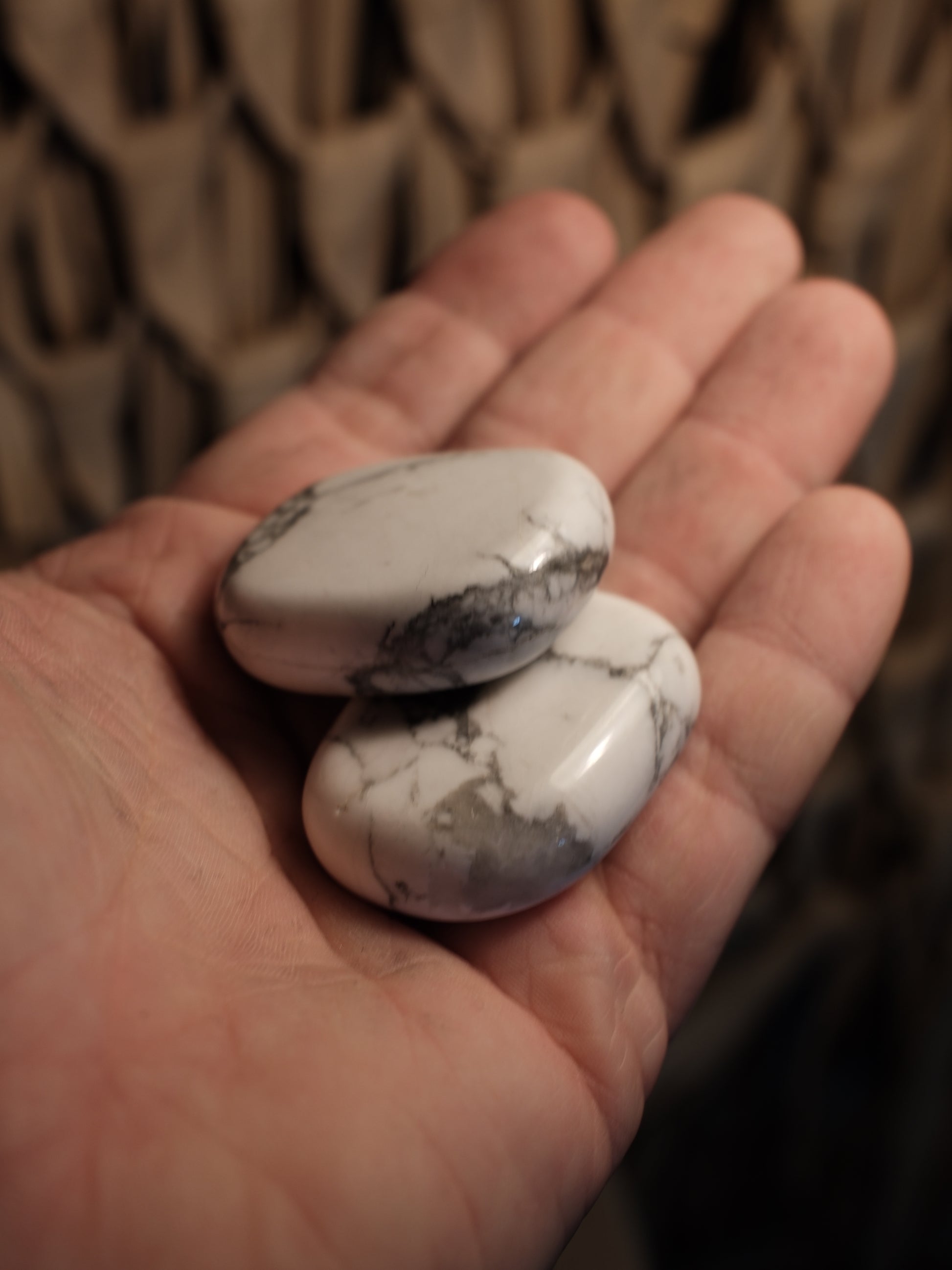 Handstenar används ofta vid meditation, avslappning och sömnritualer eftersom de hjälper till att stilla tankarna och förankra närvaro. Howlit sägs stödja emotionell bearbetning, minska irritation och bidra till ökad självkännedom. Den används ofta vid behov av återhämtning och inre ro.