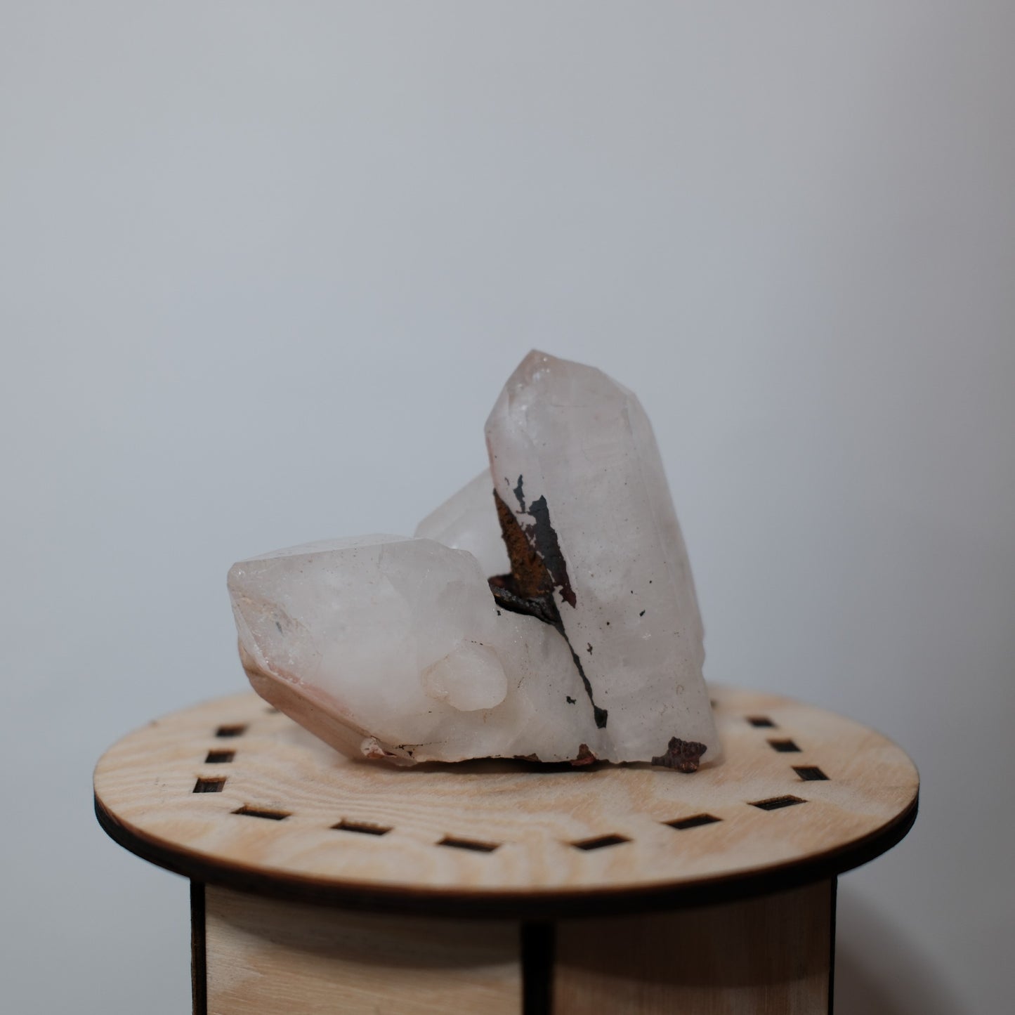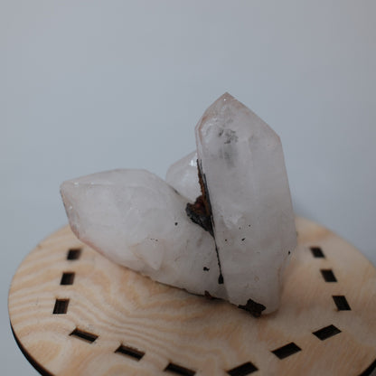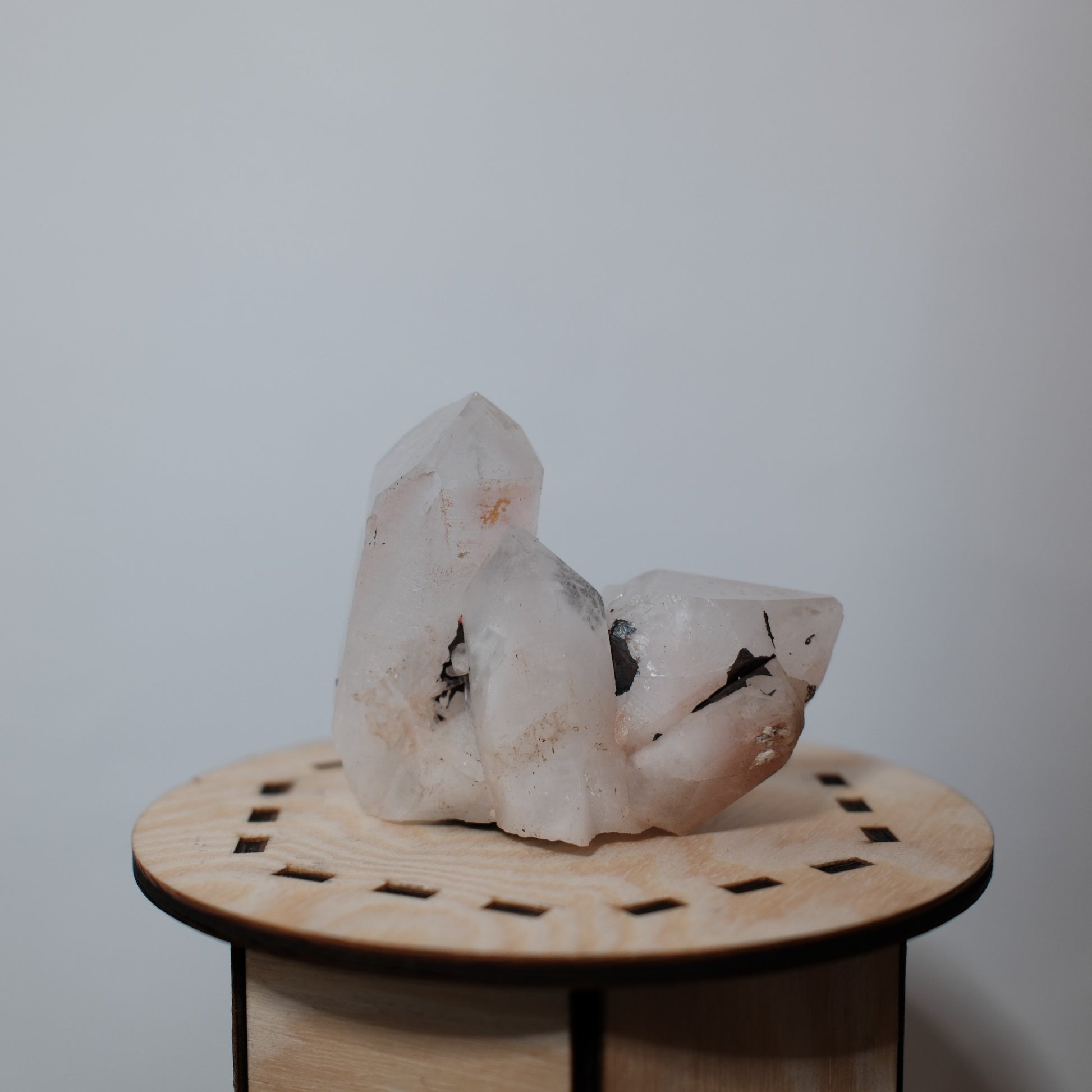 En bergkristall med vackra spetsar och mörka inneslutningar. Den känns stadig, lite ruff och väldigt jordnära. Passar fint på ett altare, i ett stilla hörn eller bara som något du vill ha nära.
