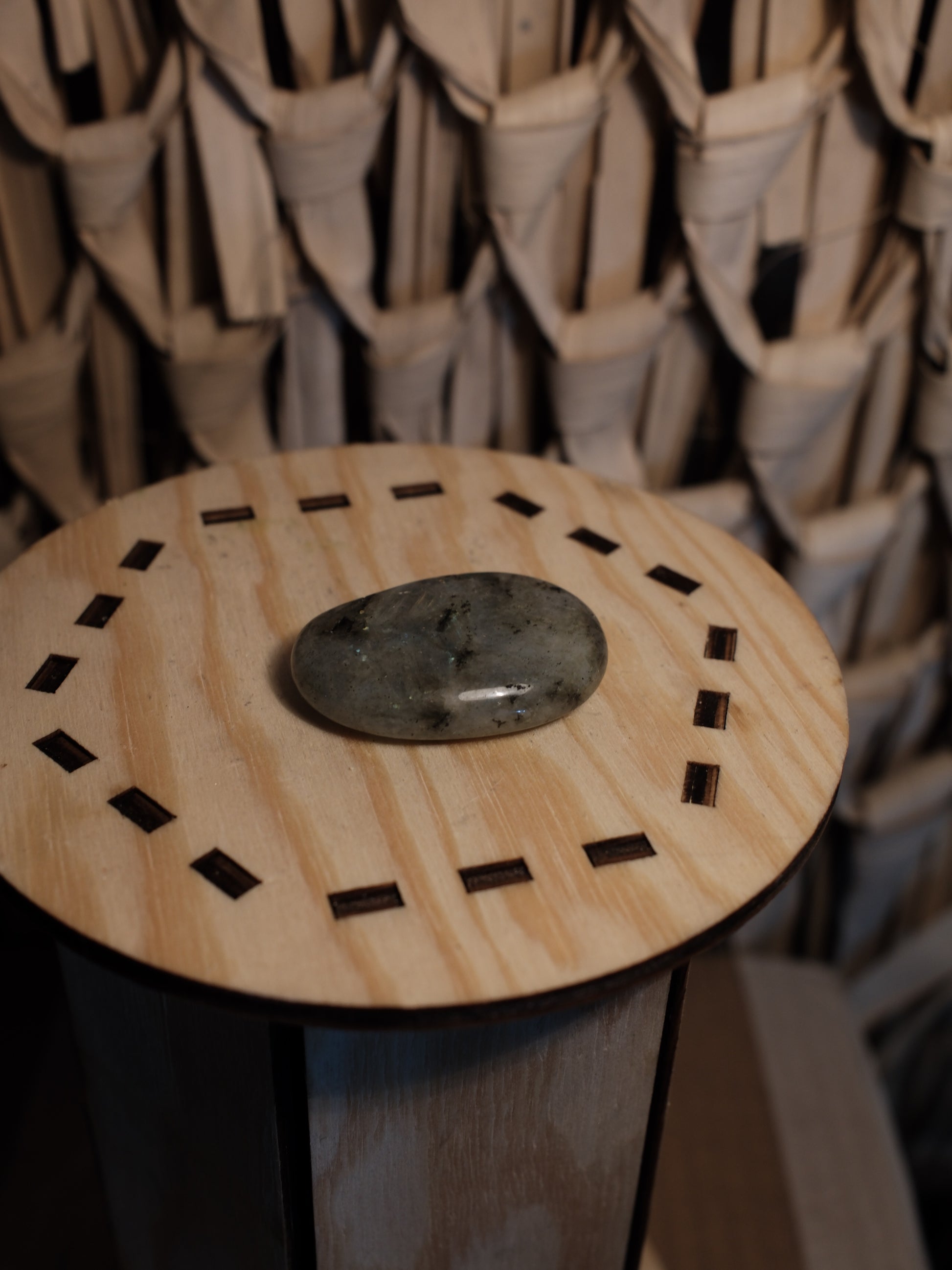 Handstenar används ofta vid meditation och energiarbete eftersom de hjälper till att fokusera och stärka den intuitiva närvaron. Labradorit sägs stödja tredje ögat och hjälpa till att balansera energifältet, stärka intuitionen och underlätta personlig utveckling.