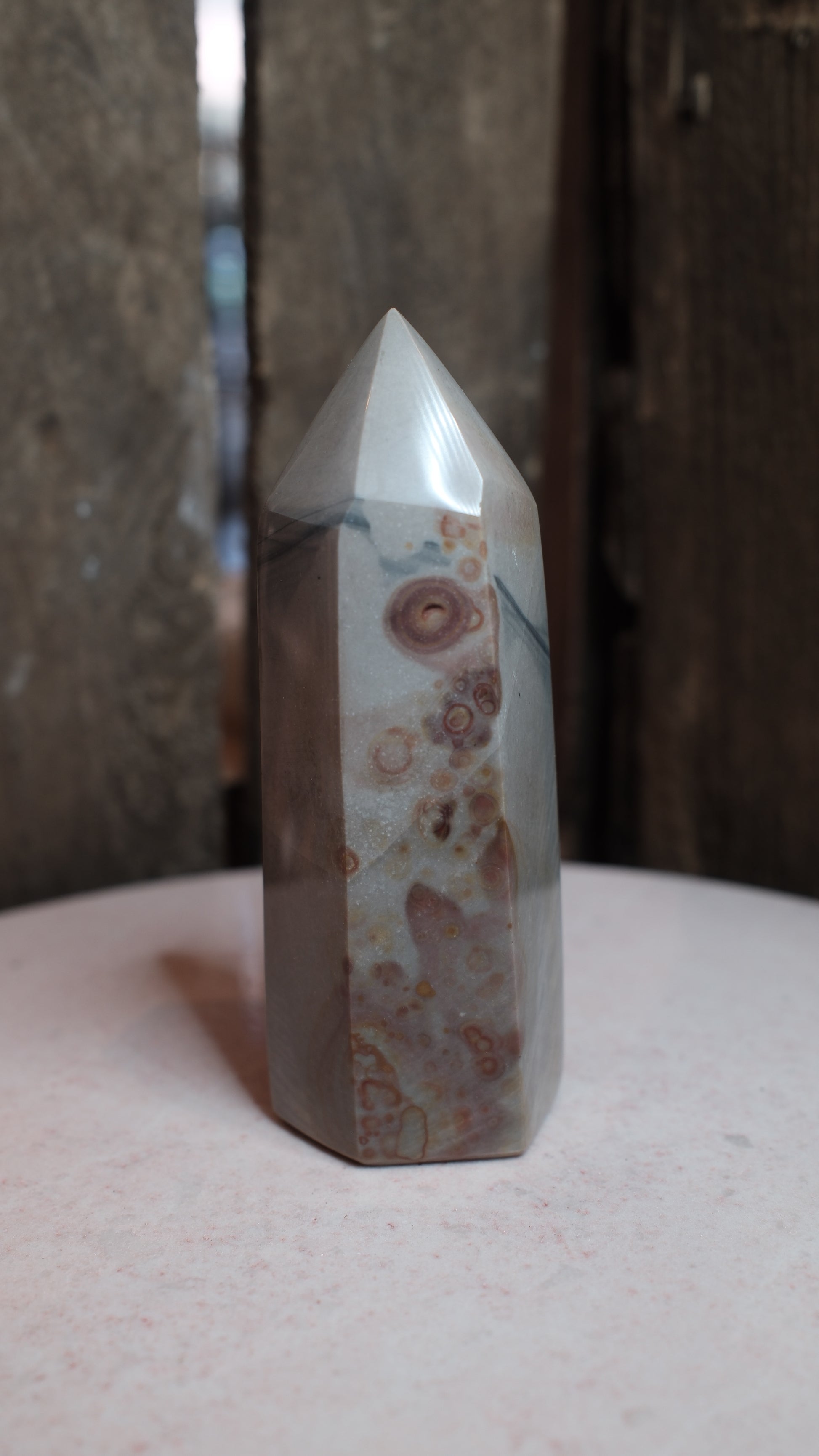 Polykrom jaspis påminner dig om att du står stadigt, oavsett vad som händer runt dig. Den hjälper dig att hitta din egen rytm, och att röra dig framåt med både styrka och lugn.